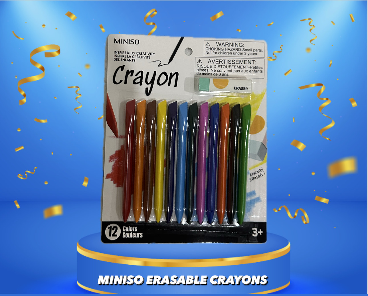 Unleash little Picassos with Miniso's Erasable Crayons! This vibrant 10-pack with eraser fea... -